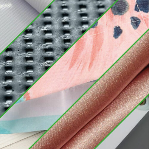 - Polyester: Polyester ist ein leichtes und gleichzeitig widerstandsfähiges Material, das sich hervorragend für den Druck von lebendigen Farben eignet. Es ist wasserabweisend und UV-beständig, was es zu einer guten Wahl für den Außeneinsatz macht.