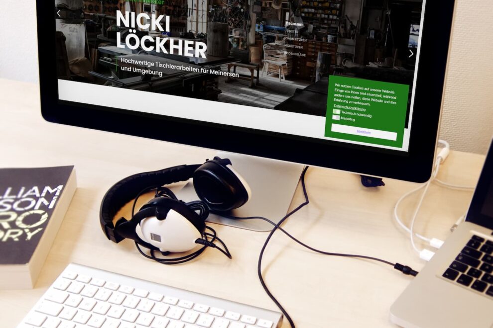 Erstellung einer modernen und professionellen Webseite für Tischlermeister Nicki Löckher. Logo vom Kunden, Texte und Bilder vollständig selbst erstellt.
